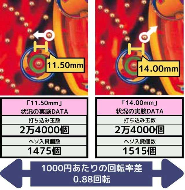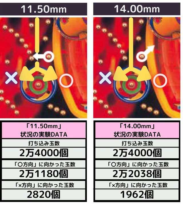 これが本当だとすると、「デジ横1本釘」は内向きだとプラス状態ではないということになります。確かに言われてみれば、基ゲージでここが広い機種はヘソへの寄りつきが良い割には回らないような……?