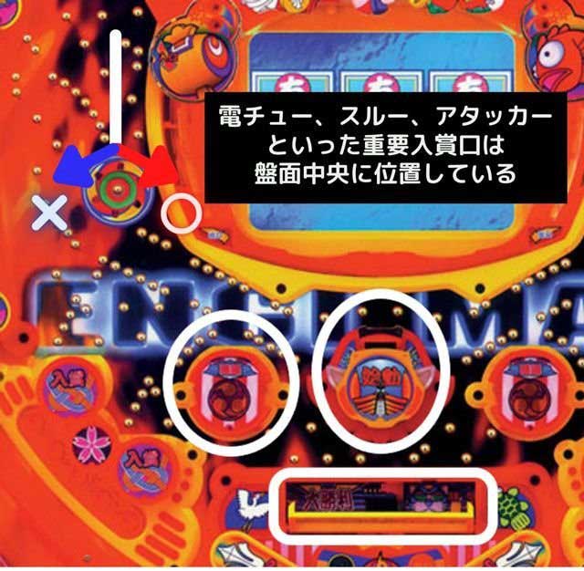 ヘソ以外の重要な入賞口(電チュー・アタッカー・スルー)は風車の内側に位置していることが多いのですから、今までの表記通り、寄り優先で「内向き上げ状態」が好ましいでしょう。