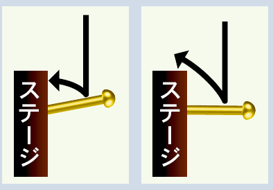 道釘「上向き状態」「下向き状態」の玉の軌道