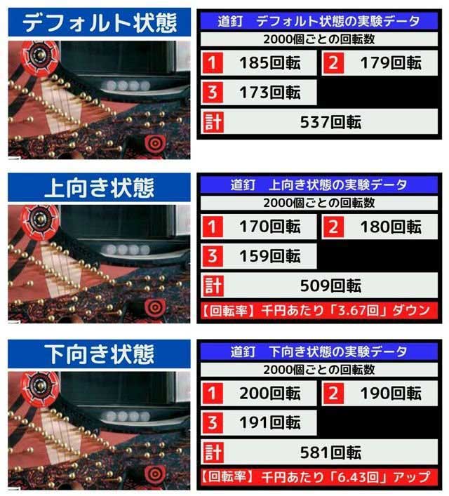 前回の検証で「横コース」からの入賞が一番多かったのは「道釘下向き状態」。ほぼ横コースからの入賞がメインであるこの機種でその核心に迫る!