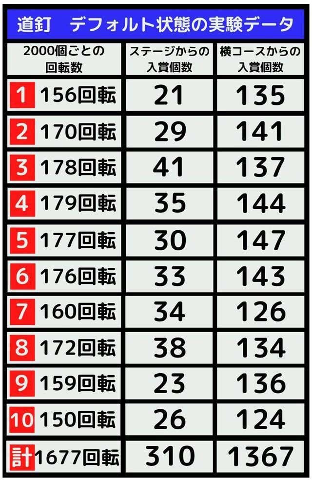 実験はできるだけ回転ムラが生じないよう「賞球ナシ」で行いましたが、それでも完璧なものではありません。
