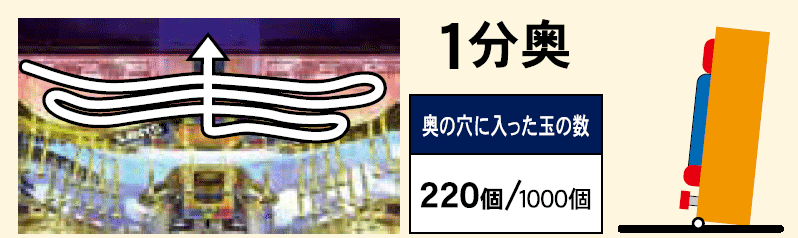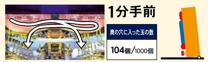 たった1分の違いでこんなにも差が……。玉の動きも明らかに異なりかなり暴れる感じで、ステージ滞在時間も短め。