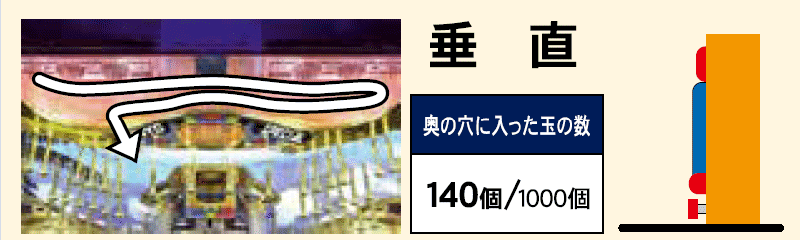 やはりネカセがキツい方が奥の穴に入っていきやすい。この数字ならかなり「クセ良し」といえるでしょう。ステージ上の玉の動きとして特徴的だったところは、