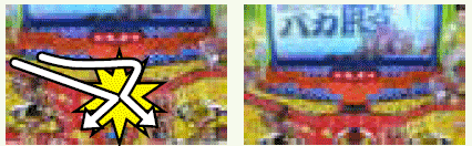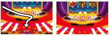 ステージ上の仕切り(窪み?)に当たって、もたれかかるようにヘソへ落ちてくる台がクセ良し。逆に、仕切りに当たらず落ちてしまう台はクセが悪い状態。