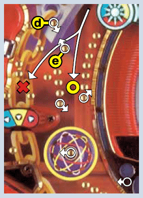風車での振り分けはもちろんですが、その手前のde間も重要ポイントです。ここが広いとスルー方面へ多くの玉が向かってしまいます。