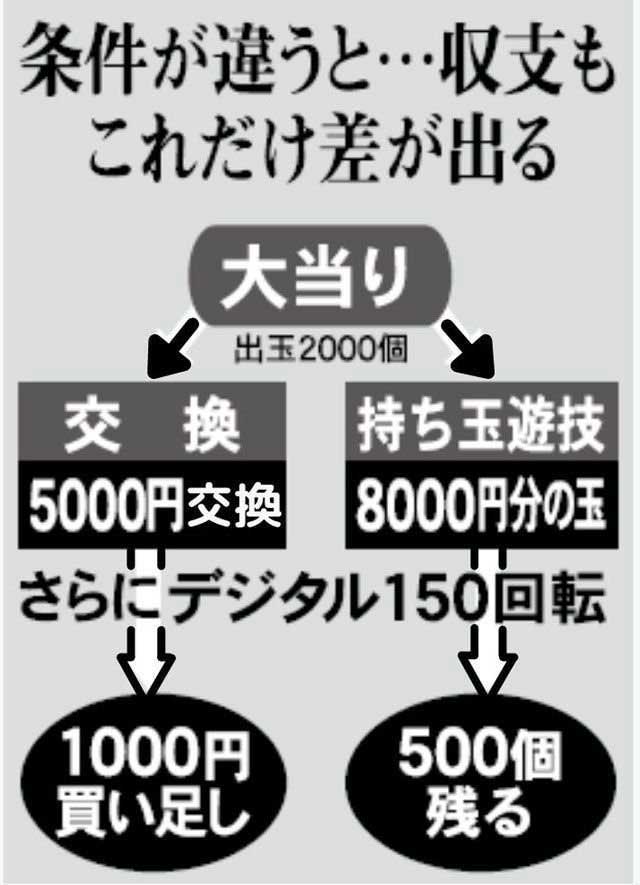 つまり、交換して再遊技すると5000円分の玉しか使えないのに、持ち玉で遊技すれば8000円分の玉を使えるわけです。