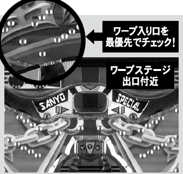 どんなに入賞率が低くても、ほとんどの場合通常コースよりもステージからの入賞率の方が高いので、盤面上部にワープ入り口のある機種はそこを狙うストロークを最優先に考えて下さい。