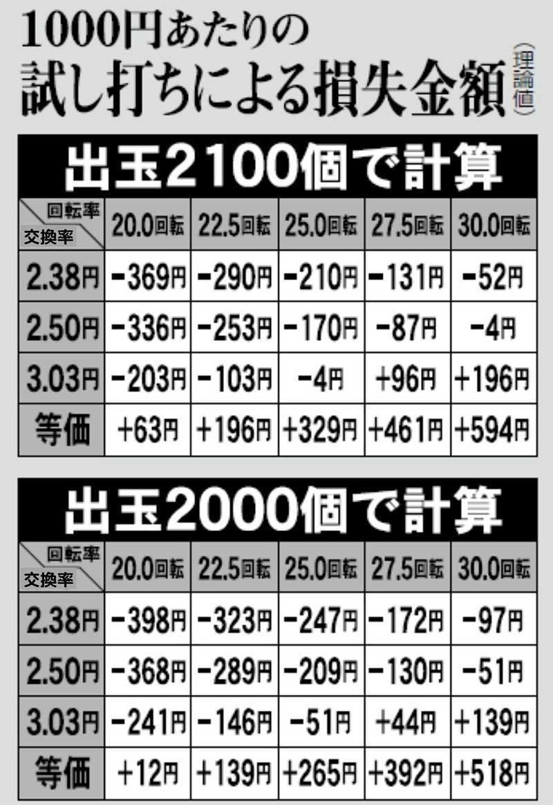 どうですか? 千円20回チョイの台を打ってしまったとしても、理論上の負け額はたいしたことありませんね。いえ、むしろそれによって得ることのできる情報からすれば安いものです。