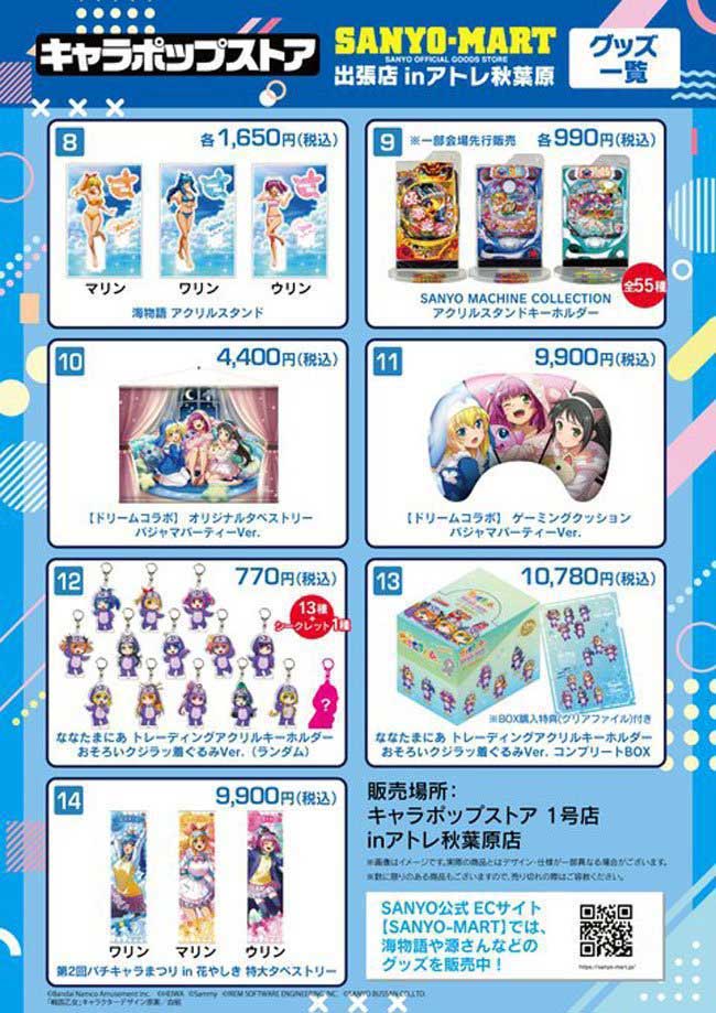約一ヶ月間の開催となるSANYOマートのポップアップストア。マリンちゃんたちのグッズを身に付けて海物語を打てば、スーパーラッキー間違いナシ!?