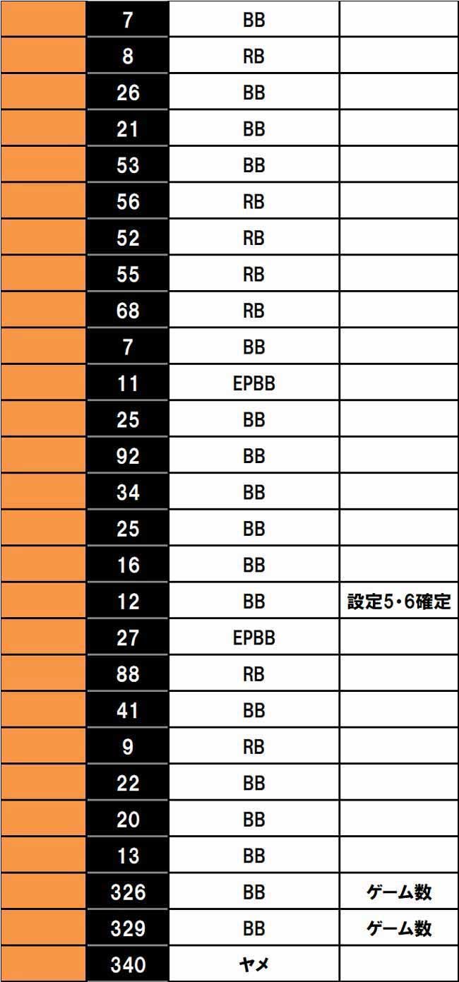 基本は5枚役を数えながら、数多くある設定推測要素を監視。個人的に重要だなと感じたのは、弱レア小役からのCZ当選、ボーナス直撃、BET高確だ。