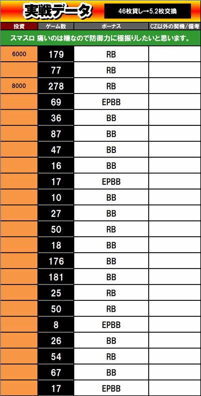 | 本日の結果 (46枚貸し5.2枚交換) |