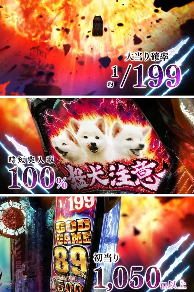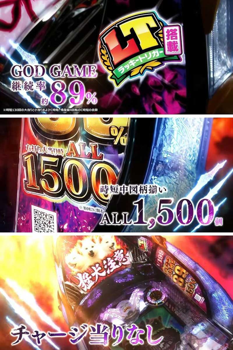 LT「GOD GAME」はSTタイプの超高速RUSHで、瞬く間に図柄が揃い、出玉1500個の10R大当りとなる!!