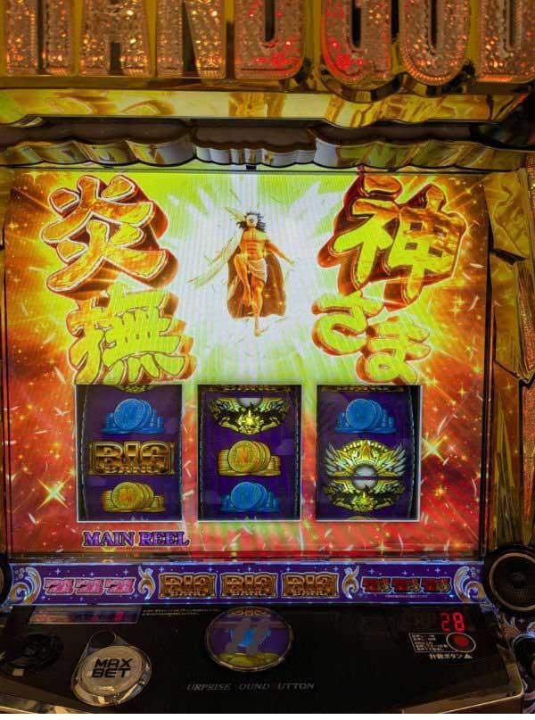 通常時、何にも起きない時は起きないし、神さま勝撫も全然うまくいかなかったりで結構苦戦しました。ただ純増9.0枚は速いです。ちょっと継続したらアッという間。お隣で打っていたウドさんはちょっと目を離した隙にめっちゃ出てるぅ~!! ってなっていました!