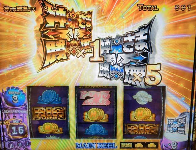 そんな中、金勝撫缶を所持している場合は、1個消費で勝利確定。すなわち天井でAT当選した場合は、最低1回はATが継続するということになる。