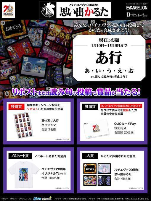みなさんの投稿でパチエヴァかるたを作成するこの企画、投稿もしくはリポストすれば豪華プレゼントがもらえちゃいます! 詳細については下記ポストから!!