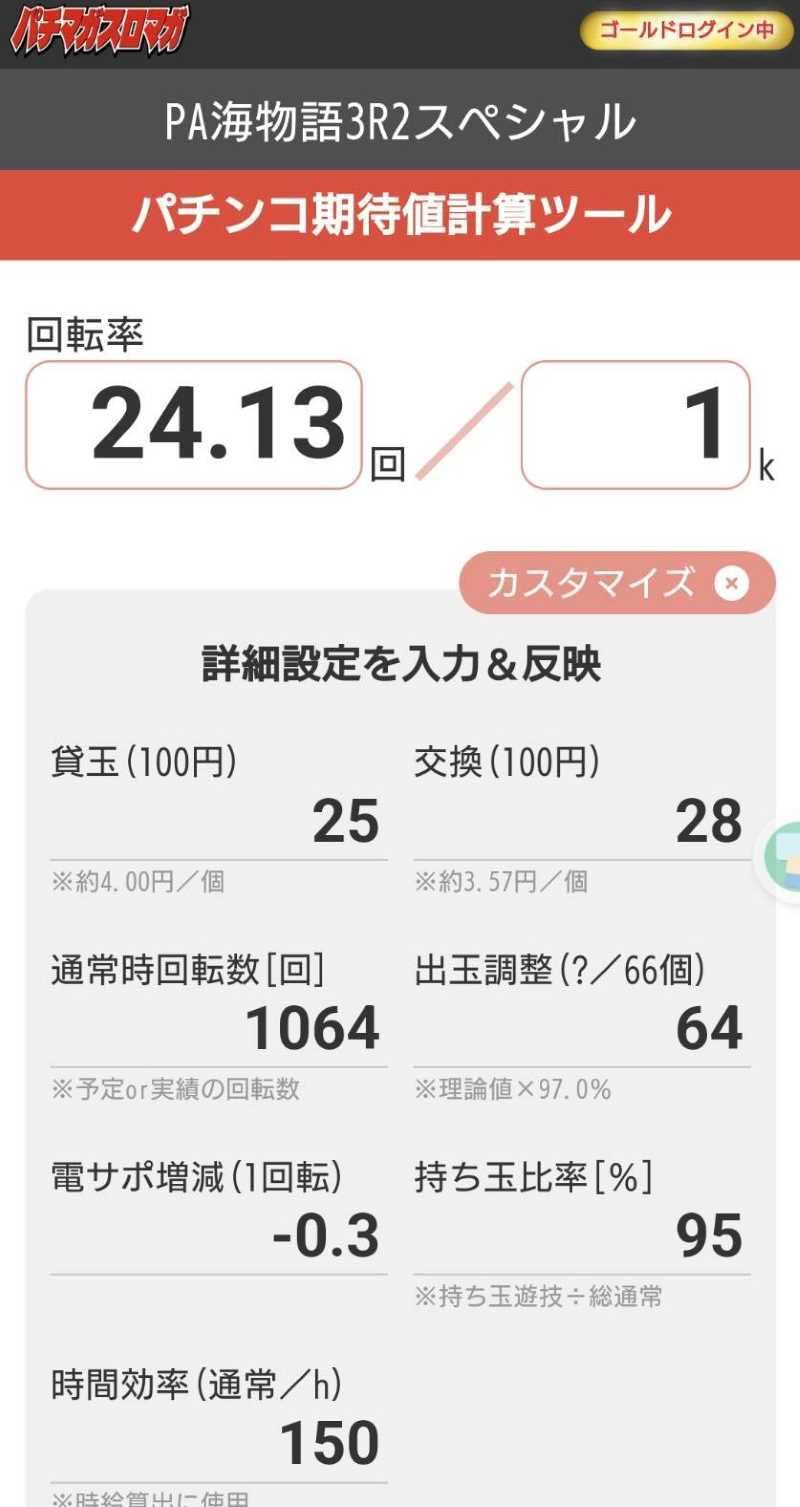 出玉こそ表記出玉を取れないけど、1000円あたりの回転数は約24回転で期待値的には問題ないけど、あくまで本機は保険台。