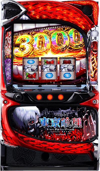 【一口メモ】AT「東京喰種咬」は差枚数管理型。レア小役による直乗せに加え、喰種対決に勝利できればBITES突入! BITES中は小役を引ければ差枚数の上乗せの報酬アップが濃厚! 超BITESなら4桁上乗せ発生の大チャンス!? ツラヌキ時は上位CZ「有馬貴将JUDGEMENT」突入。成功時は上乗せ特化ゾーン「CCGの死神」へ移行!