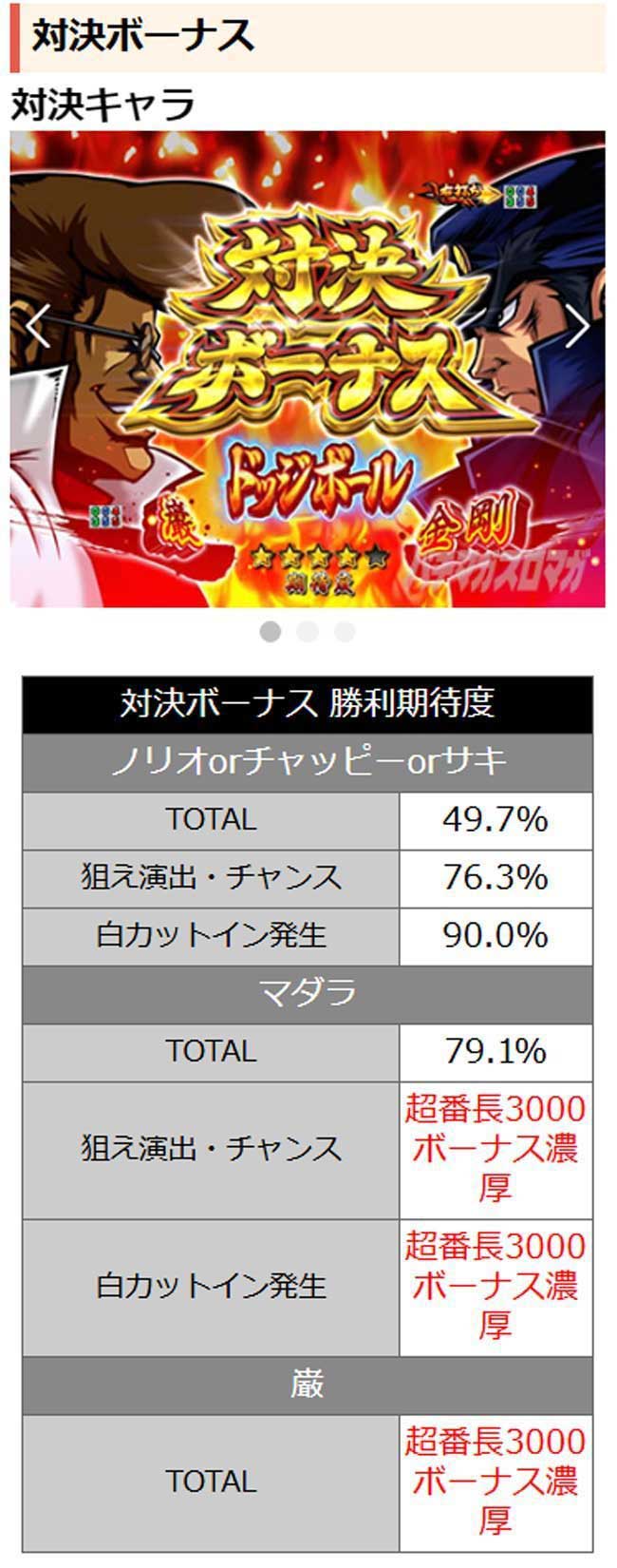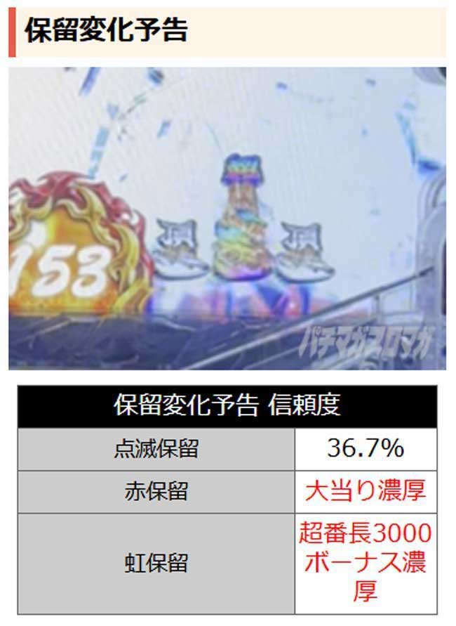 対決ボーナスが発生した時点で大当り濃厚となり、狙え演出時に轟の顔がいつもよりアップなら勝利期待度アップ!! 対決ボーナス勝利で超番長3000ボーナスだ!!
