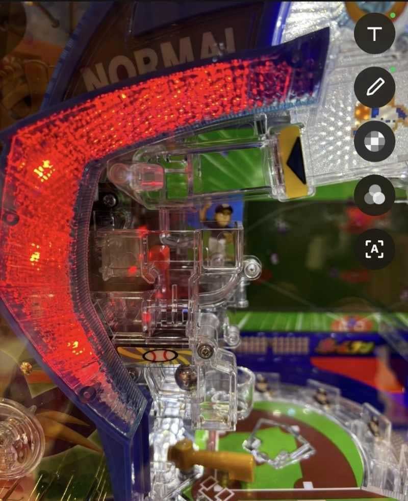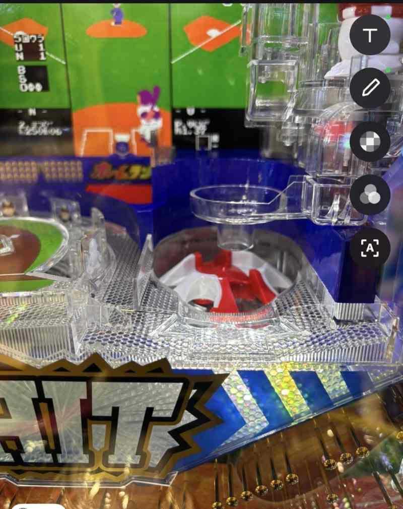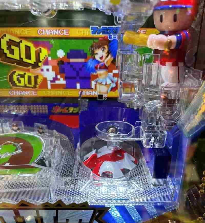 一番割合が多くなる赤い橋を渡り切らなかった玉(変化球コース選択)は、バットをハネに見立てるならばいわゆる「ピンボール」のような状況になる。これだとバットで玉を捉えることが少々難しくなる。