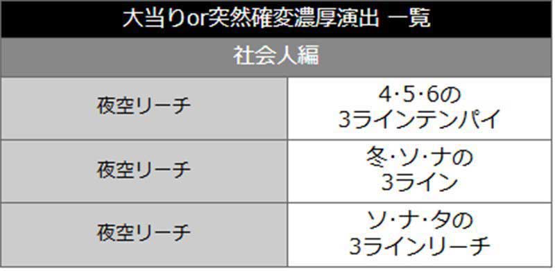 またあらゆる大当りの可能性がある「夜空リーチ」の図柄の組み合わせは、知らないと見逃す可能性もあるのでしっかりチェックしておこう!