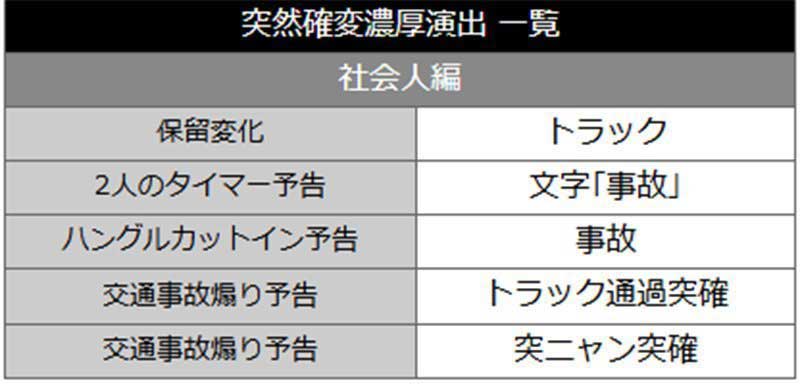 ここに挙げた演出は確変確定ではないものの、何らかの大当りが濃厚となるものばかり。中には突然確変濃厚となる演出も。