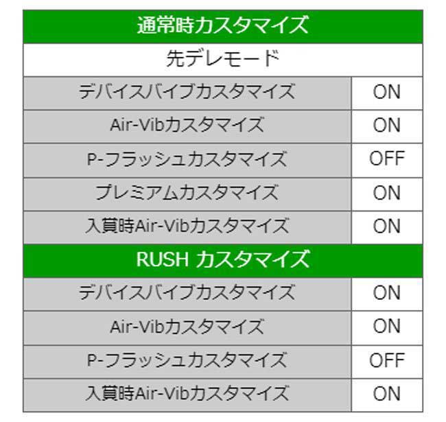 続いては、気になる方も多いであろう通常時のカスタマイズ演出について。まずは入賞時Air-Vibカスタマイズの大当り占有率がコチラ。