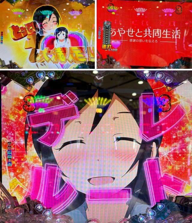 先デレ演出+デバブル先読み+あやせヤンデレゾーンLv.5+人生相談(赤オーラ)+デレワープ→告白リーチ→大当り