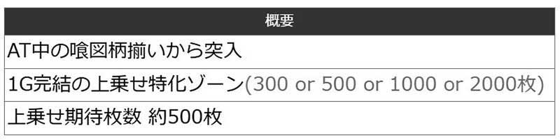 両特化ゾーンともに1G完結型となっており、上乗せ期待枚数は約500枚。