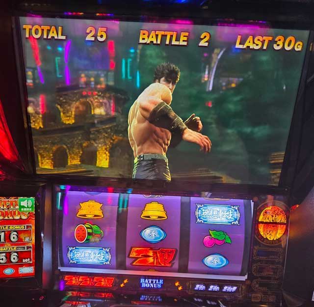ちなみに画像の北斗はAT1セット目の獲得枚数が少なすぎて撮った物。2セット目開始時点で獲得枚数25枚はヤバくないですか?(笑)