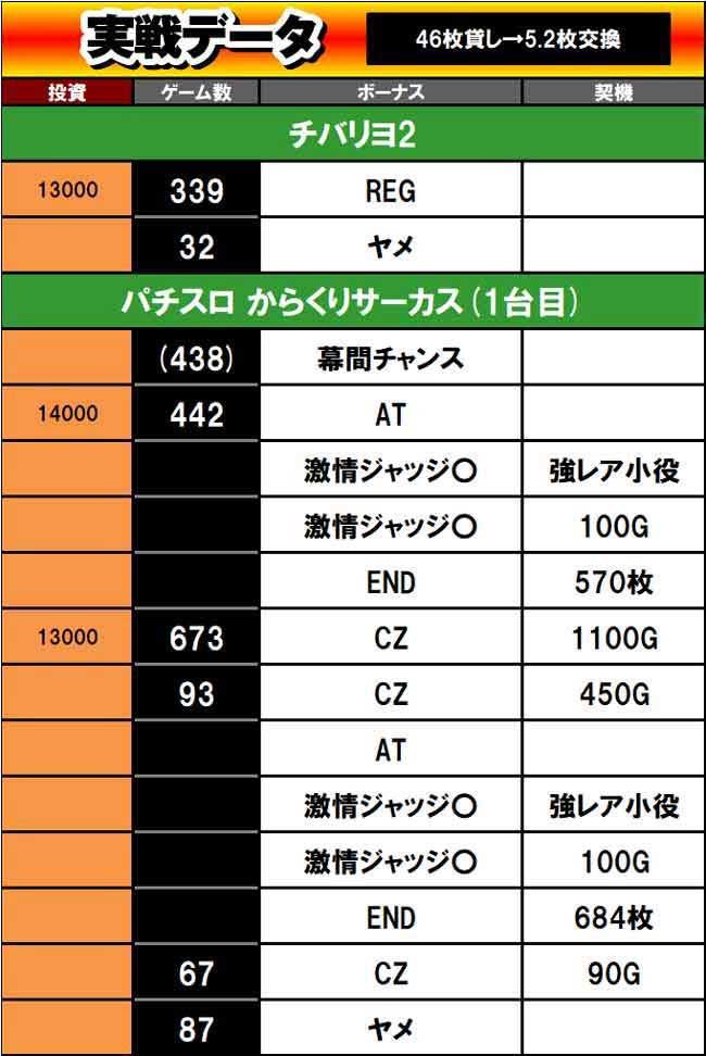 | 本日の結果 (46枚貸し5.2枚交換) |
