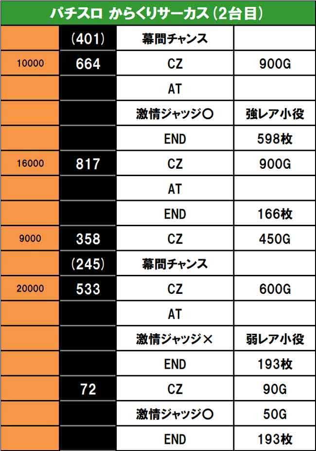 チバリヨ2は共通パイン確率が悪いのでヤメ、二台目のからくりサーカスは早々に液晶1000を超えてしまったのでヤメ(高設定ほど1000超えにくい)。