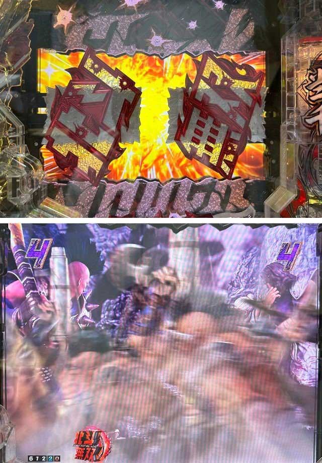 アミバのキラキラ目に心を奪われていると、リーチ中に役モノが完成して本機の注目演出の一つである拳王SPリーチに発展!!