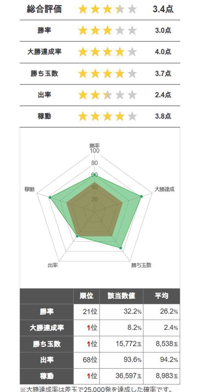導入から4日間のデータでは稼働はもちろん大勝達成率&勝ち玉数も1位の三冠達成。