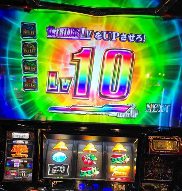 ちなみにパチスロ バイオ7は444Gでアイテム×2 バレット青・黄×2 赤×3の状態で拾った台。既にその状態でもそこそこのステージレベルに期待できる状況でしたが、上手い事そこからさらにアイテムやバレットを複数個獲得して、結局レベル10でCBを突破。ゲーム数もそうですが、この台は中身もかなり良いおいし過ぎる台でしたね。ラッキーラッキー♪