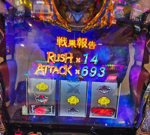 AT期待度約70%で成功したら大連続ボーナス当選となる大チャンスだったんですが………結果は失敗(涙)。