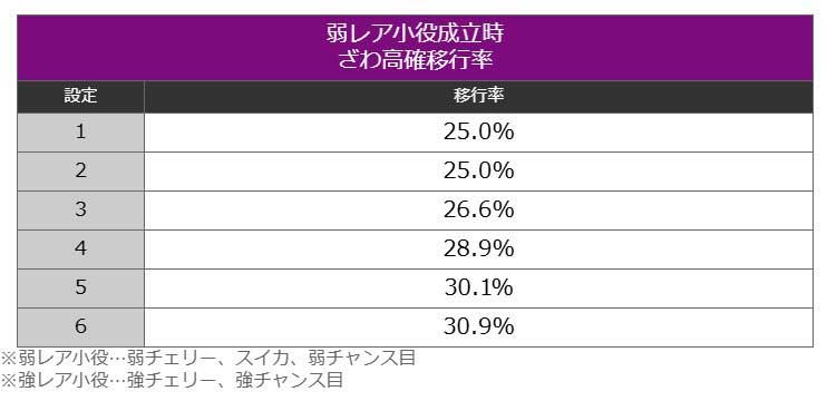 さてそんな「ざわ高確」だが、弱レア小役とゲーム数、2つの移行ルートが存在。