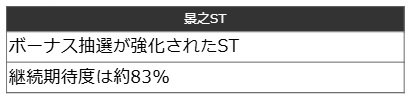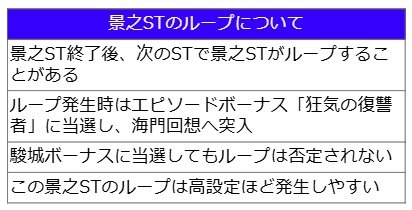 また景之STにはループ性もあり、終了後のSTが再度、景之STとなる可能性を秘める。高設定ほど優遇されているので、その頻度にも注目したい。