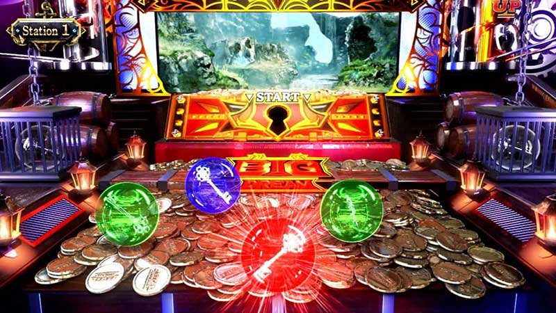 通常時は、ゲームセンターでおなじみの「プッシャーゲーム」を完全再現しています。