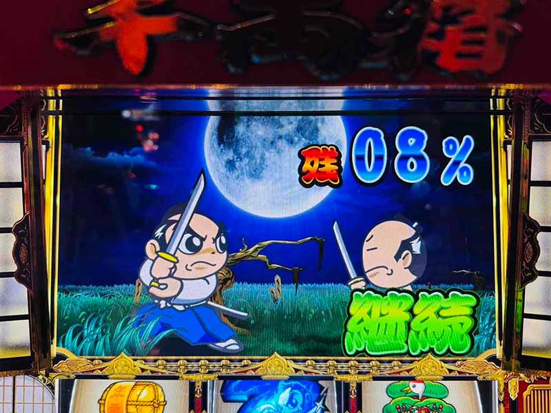 吉宗の剣豪演出中、右上の残%に77%が出現したら、BIG確定