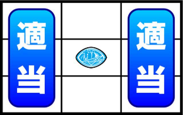 右リール上段(青い☆マークの位置)に赤7・白7・BAR・蝶のブランク絵柄が止まったら強チャンス目。左リールは適当打ちで大丈夫です。