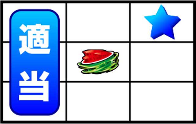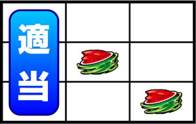 スイカが右下がりにテンパイしたら、スイカ確定。左リールは適当打ちで3枚を獲得できますよ。