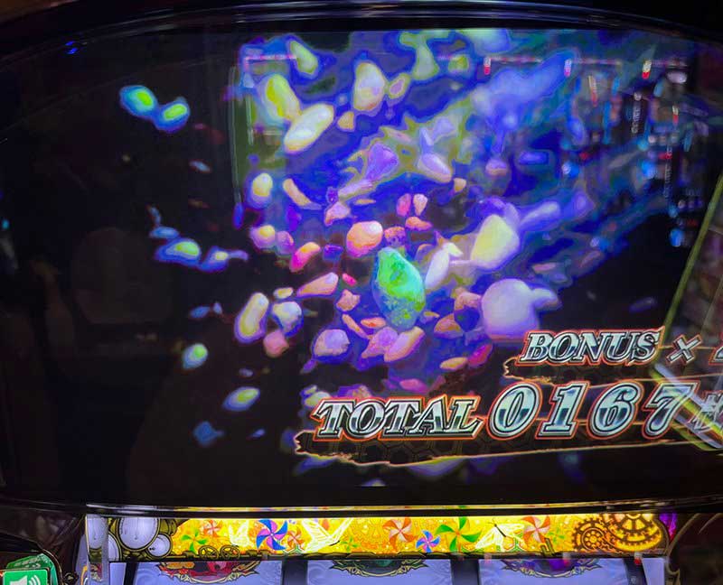 隣はすごく出てて美馬STにも行ってたし、100G以内でバンバン当ててしかもほぼエピボ。でもその隣は調子良かったのかと言われるとそうでもなかったから、5台並びではなくカバネリの島は点々としてたのかも。それともその人のヒキが強すぎたのか? こればっかりは確定画面見てないからわかんないよねぇ。