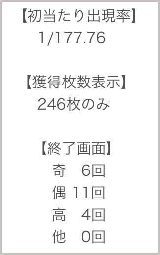しのけん(以下・し)『実戦後の答え合わせ的SNSでは設定6と書かれていたし、AT中の「246枚表示」で偶数は確定していたしで、他の要素含め設定6で大丈夫だと思う』