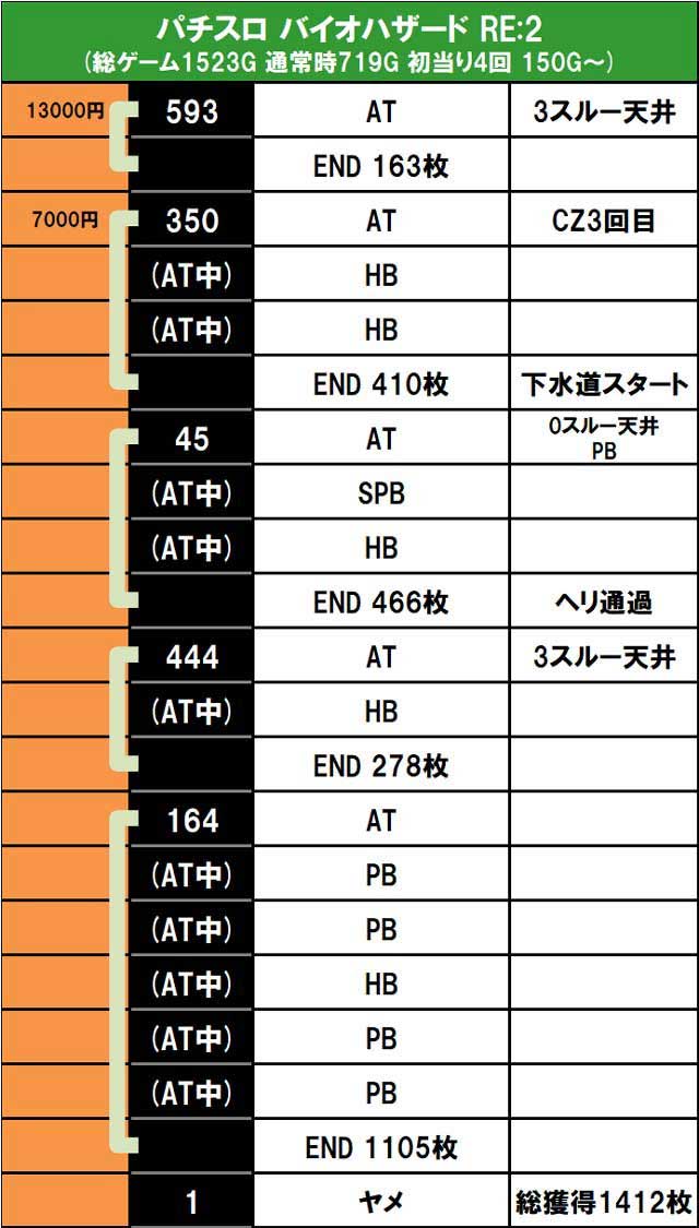 そんな状況下で1台空いていた『パチスロ バイオハザード RE:2』。履歴を確認してみると初当りは軽め、フィギュアは偶数示唆強が多めで高設定示唆強が一発ある。
