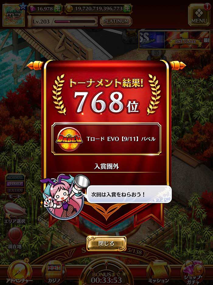 でもコイン増えたからオールオッケー☆ 短時間のトーナメントはやっぱり参加しやすいなぁ。