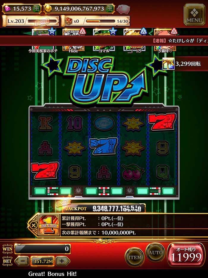 先週の「ワンクラス」と同じく、レベルに関係なく固定BETでプレイ出来るのでコインも稼げる大チャンスで、イベント後だったので報酬で貰えたアイテムも手元にある状態。