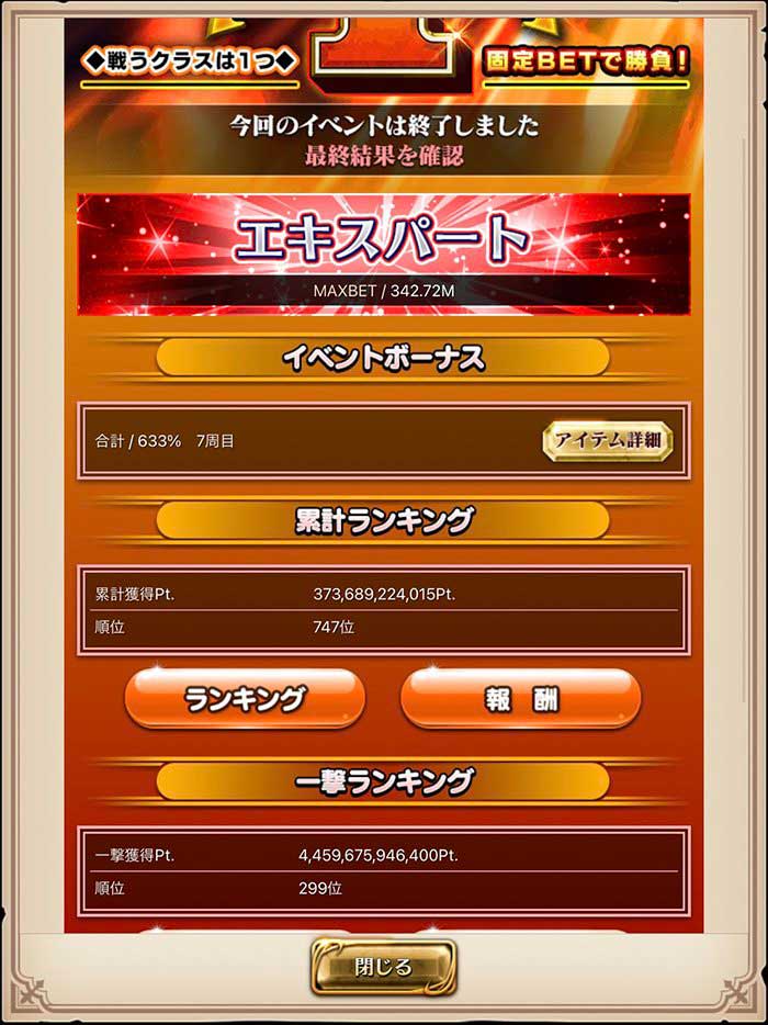 全ユーザーが固定BETで戦う「ワンクラス」で差を付けるのはイベボとアイテムでしょうね。後はもうヒキ次第!