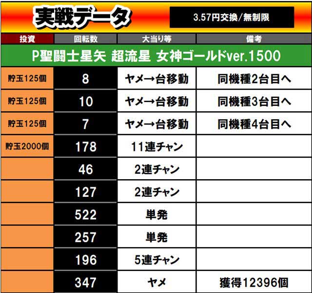 ここまでの感触的には回転率21~23くらいなので、やはり持ち玉でなら打っていても良いといった感じか。いきなり見せ場が来た形となったが、となれば後は夜まで座っているのみ。