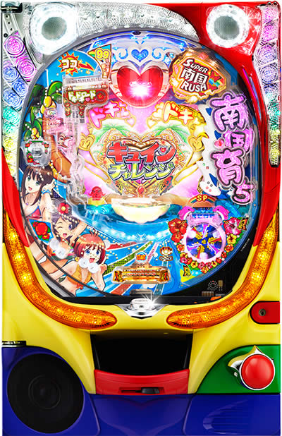 実質当選確率約1/99(液晶大当り1/319.6、役モノ大当り1/145.3)、大当り出玉は5R時約330個、15R時約980個のデジパチとハネモノを融合させた機種。大当り後には「SUPER南国RUSH」という50回転の電サポモードに突入し、平均2.53連チャンに期待できる。