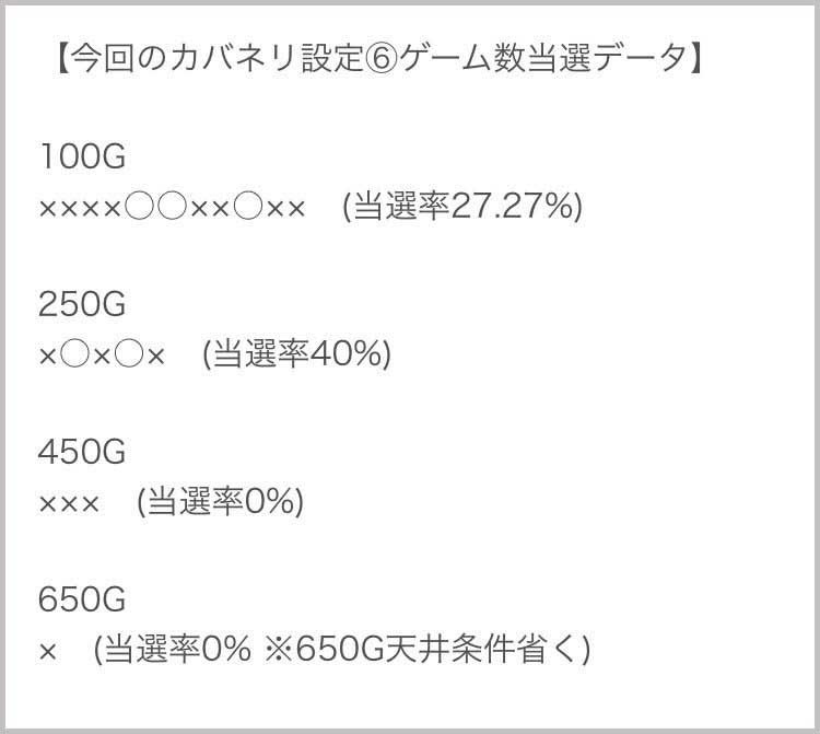 し『う~ん高設定、特に設定6だと3種のCZ合算は最終的に1/130~1/140程度に落ち着く事が多いと思うんだけど、設定6でも3000G程度の試行で1/180くらいだった事もあるから安定はしないよね』